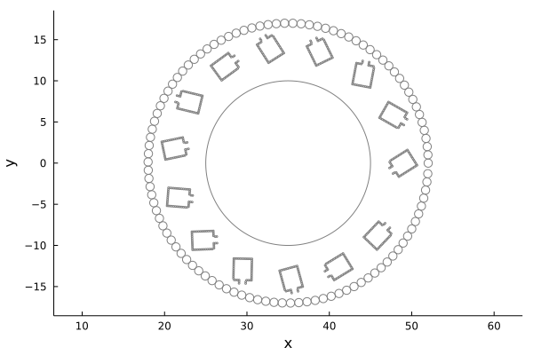 The cloak consists of a layer of resonators covered with an extra protective layer (cf Figure 2). This arrangement is supposed to mimic how these resonators might attach to an object that needs to be cloaked with glue or paint. The orientations of the resonators are voluntarily chosen to be random for two main reasons. First, the manufacturing process of the cloaking is rather simple since they only need to be glued together in a matrix, without any precautions on their orientations. Second, each cloak will be unique, making it difficult to catalogue the cloaked targets. In our numerical experiments, we use simulated Helmholtz resonators made of a cavity and a mouth. Their different sizes and properties are given in Table 1.